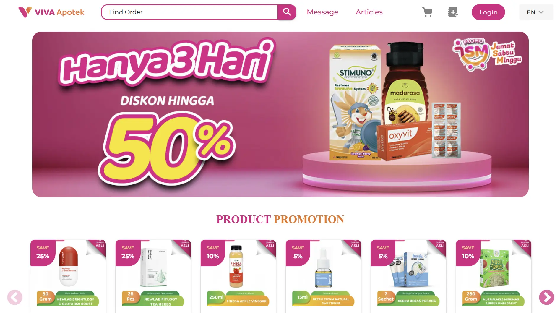 Informasi mengenai promo terbaru, dapat anda lihat di website VIVA Apotek atau melalui Instagram VIVA Apotek.