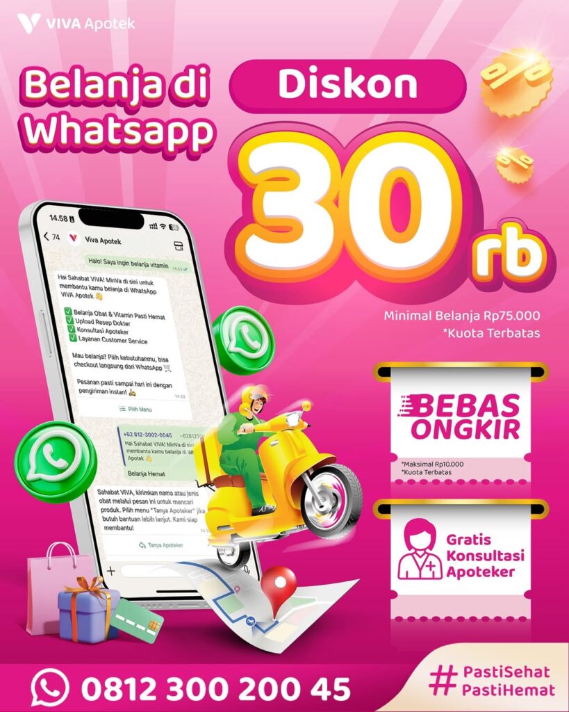Dengan layanan ini, siapa pun bisa membeli obat, vitamin, suplemen, maupun produk kesehatan lain hanya melalui aplikasi WhatsApp. Tidak perlu repot mengunduh aplikasi tambahan, cukup chat ke nomor resmi VIVA Apotek dan pesanan pun bisa langsung diproses.