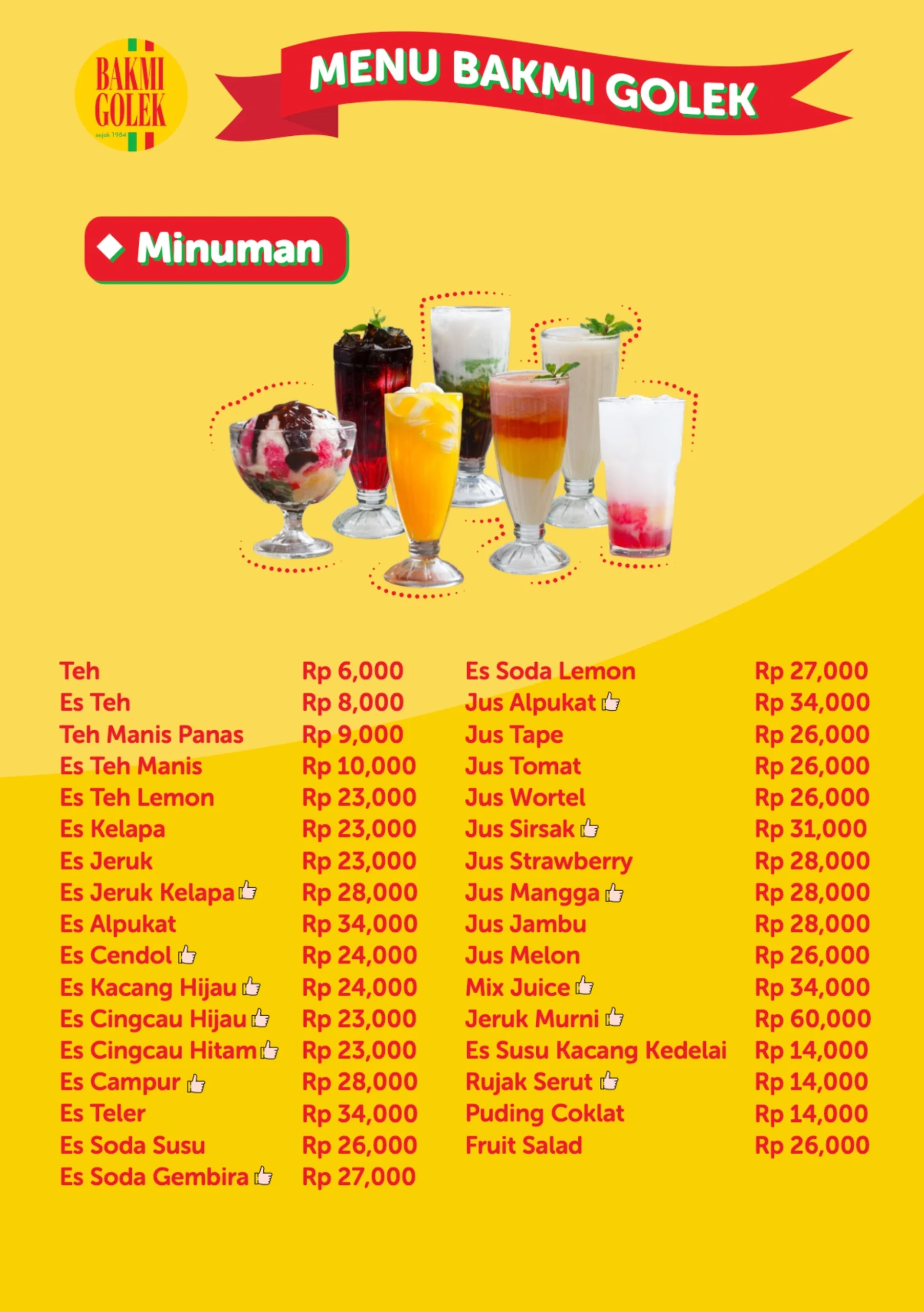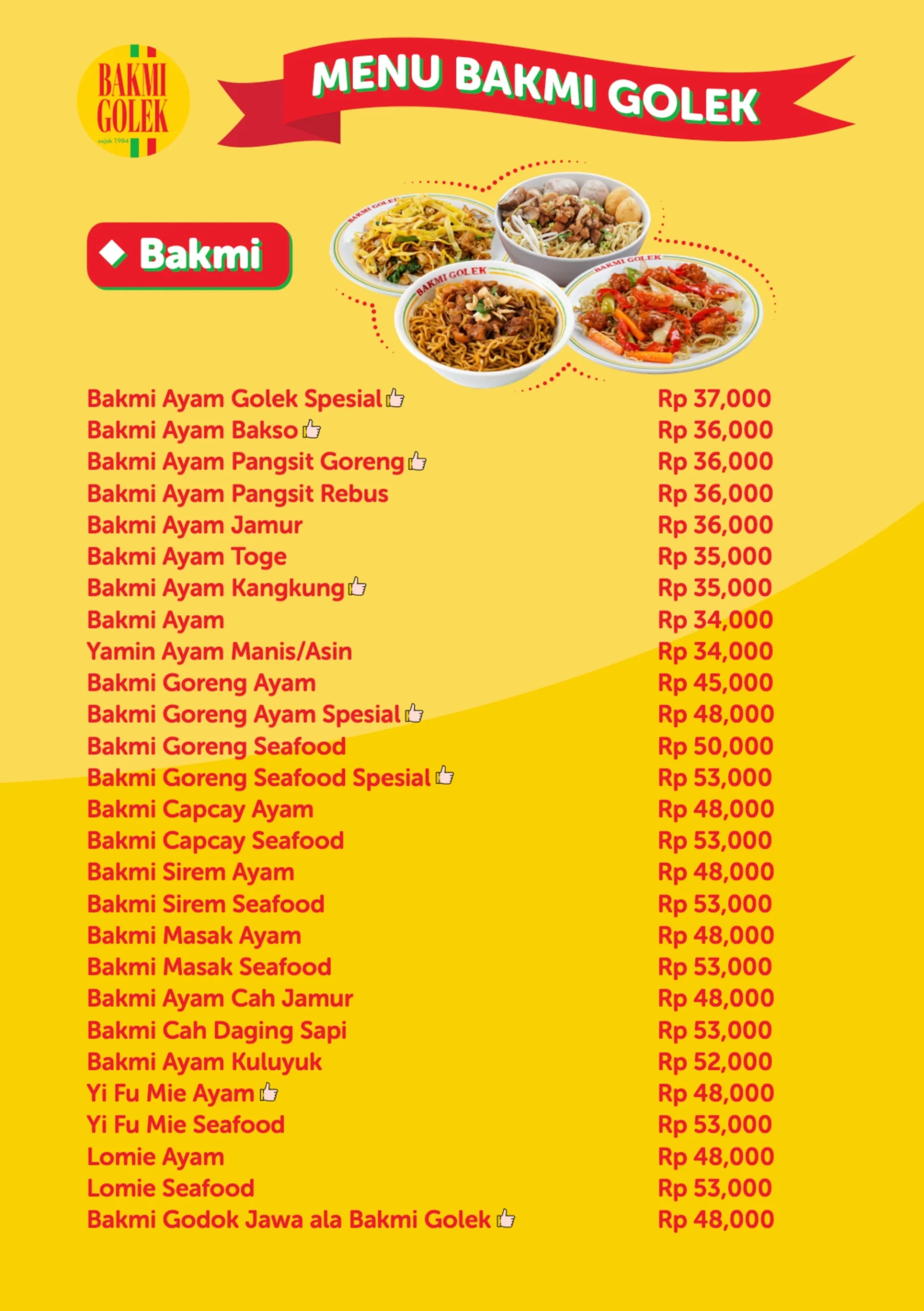Berikut daftar menu Bakmi Golek dan harganya terbaru di tahun 2026: