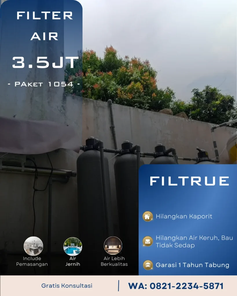 Ketiga, pilihan paket yang sangat bersahabat untuk rumah tangga. Paket filter air tipe 1054 dari Filtrue merupakan salah satu pilihan favorit. Dengan harga mulai dari Rp 3.500.000, Anda sudah mendapatkan sistem filtrasi lengkap yang sanggup memenuhi kebutuhan air satu rumah dengan debit yang stabil.